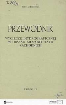 | Ziemońska, Zofia, 1971, Przewodnik wycieczki hydrograficznej w obszar krasowy Tatr Zachodnich | Oct 18, 2023 |
