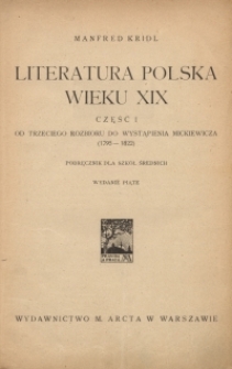 Title: Literatura polska wieku XIX. Cz. 1, Od trzeciego rozbioru do wystąpienia Mickiewicza (1795-1822) : podręcznik dla szkół średnich