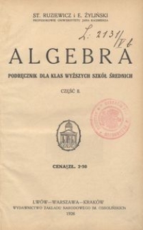 | Ruziewicz, Stanisław Leon (1889-1941), 1926, Algebra : podręcznik dla klas wyższych szkół średnich | 16 lip 2024 |