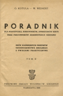 Title: Poradnik dla nauczycieli, kierowników, dyrektorów szkół oraz pracowników administracji szkolnej : zbiór ważniejszych przepisów ustawodawstwa szkolnego z uwagami praktycznymi. T. 2