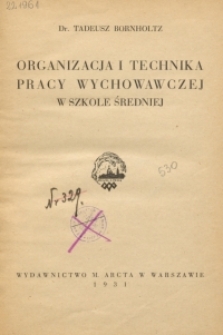 | Bornholtz, Tadeusz (1901-1966), 1931, Organizacja i technika pracy wychowawczej w szkole średniej | 18 paź 2023 |