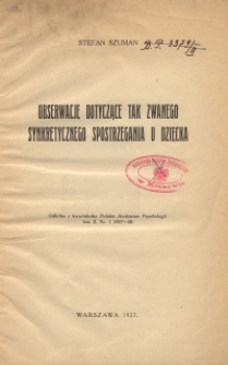 | Szuman, Stefan (1889-1972), [1927], Obserwacje dotyczące tak zwanego synkretycznego spostrzegania u dziecka | Jul 11, 2024 |