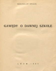 | Opałek, Mieczysław Władysław (1881-1964), 1936, Gawędy o dawnej szkole | Sep 3, 2024 |