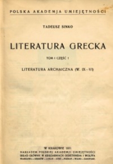 | Sinko, Tadeusz (1877-1966), 1931, Literatura grecka. T. 1, Cz. 1, Literatura archaiczna (w. IX-VI) | 16 lip 2024 |