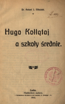 | Mikulski, Antoni Jan (1878-1951), 1912, Hugo Kołłątaj a szkoły średnie | 16 sty 2024 |
