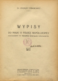 | Fedorowicz, Zygmunt (1889-1973), [1923], Wypisy do nauki o Polsce wspólczesnej dostosowane do programu gimnazjów państwowych | Jul 11, 2024 |