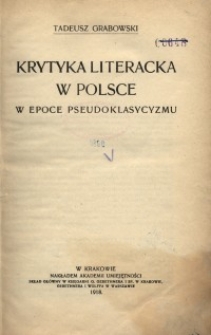 | Grabowski, Tadeusz (1871-1960), 1918, Krytyka literacka w Polsce w epoce pseudoklasycyzmu | Oct 18, 2023 |