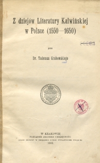 | Grabowski, Tadeusz (1871-1960), 1906, Z dziejów literatury kalwińskiej w Polsce (1550-1650) | Jul 10, 2024 |