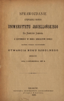 Tytuł: Sprawozdanie ustępującego rektora Uniwersytetu Jagiellońskiego dra Franciszka Kasparka z czynności w roku szkolnym 1888/9