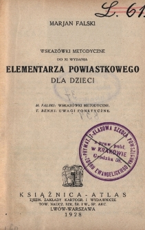 | Falski, Marian (1881-1974), 1928, Wskazówki metodyczne do XI wydania Elementarza powiastkowego dla dzieci | Aug 22, 2024 |