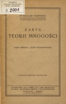 | Sierpiński, Wacław (1882-1969), 1923, Zarys teorji mnogości. Cz. 1, Liczby pozaskończone | 26 sie 2024 |