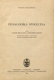Pisma pedagogiczne / Helena Radlińska ; 1 ; Źródła do Dziejów Myśli Pedagogicznej ; t. 5
