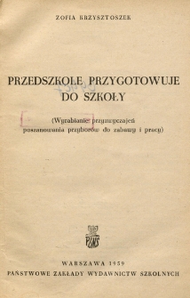 Title: Przedszkole przygotowuje do szkoły : (wyrabianie przyzwyczajeń poszanowania przyborów do zabawy i pracy)