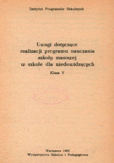 Title: Uwagi dotyczące realizacji programu nauczania szkoły masowej w szkole dla niedowidzących : klasa V